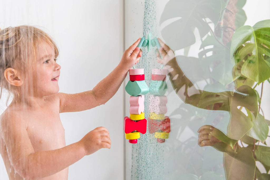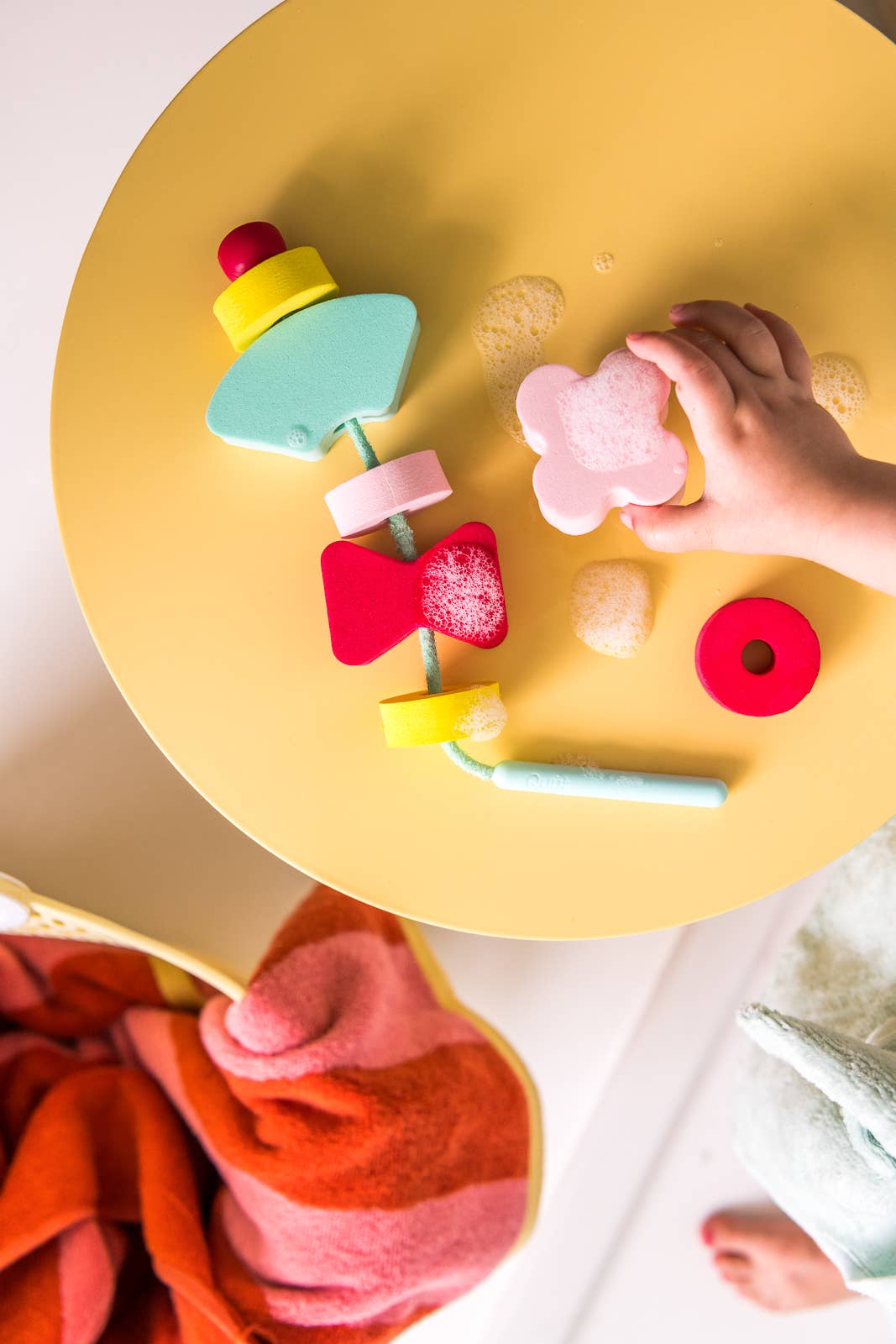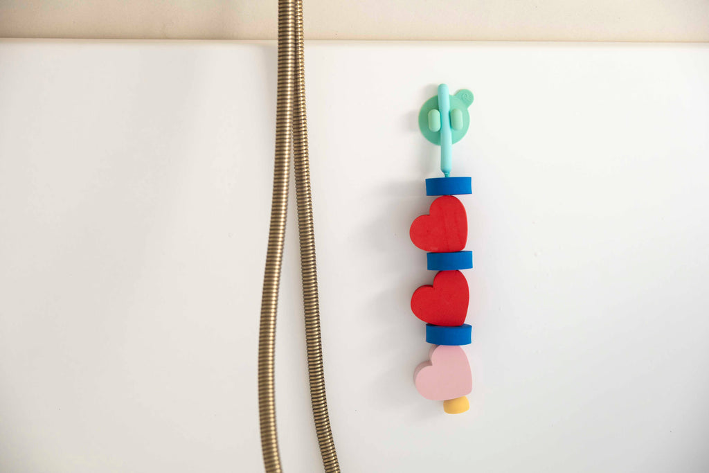 Quut Beedi are brightly colored lacing beads in soft EVA foam. Thanks to the larger shape they are perfect for smaller hands! Stimulate your kids’ cognitive ability and enhance their hand-eye coordination. Use the suction cup to hang your kid’s creation on your bathroom wall and give the room a kid's friendly touch. Different shapes and colors = Endless variations Shapes float on water and stick to the walls.. Great for hand and eye coordination Creative play, visual perception and fine motor skills Easy to play with by little hands.