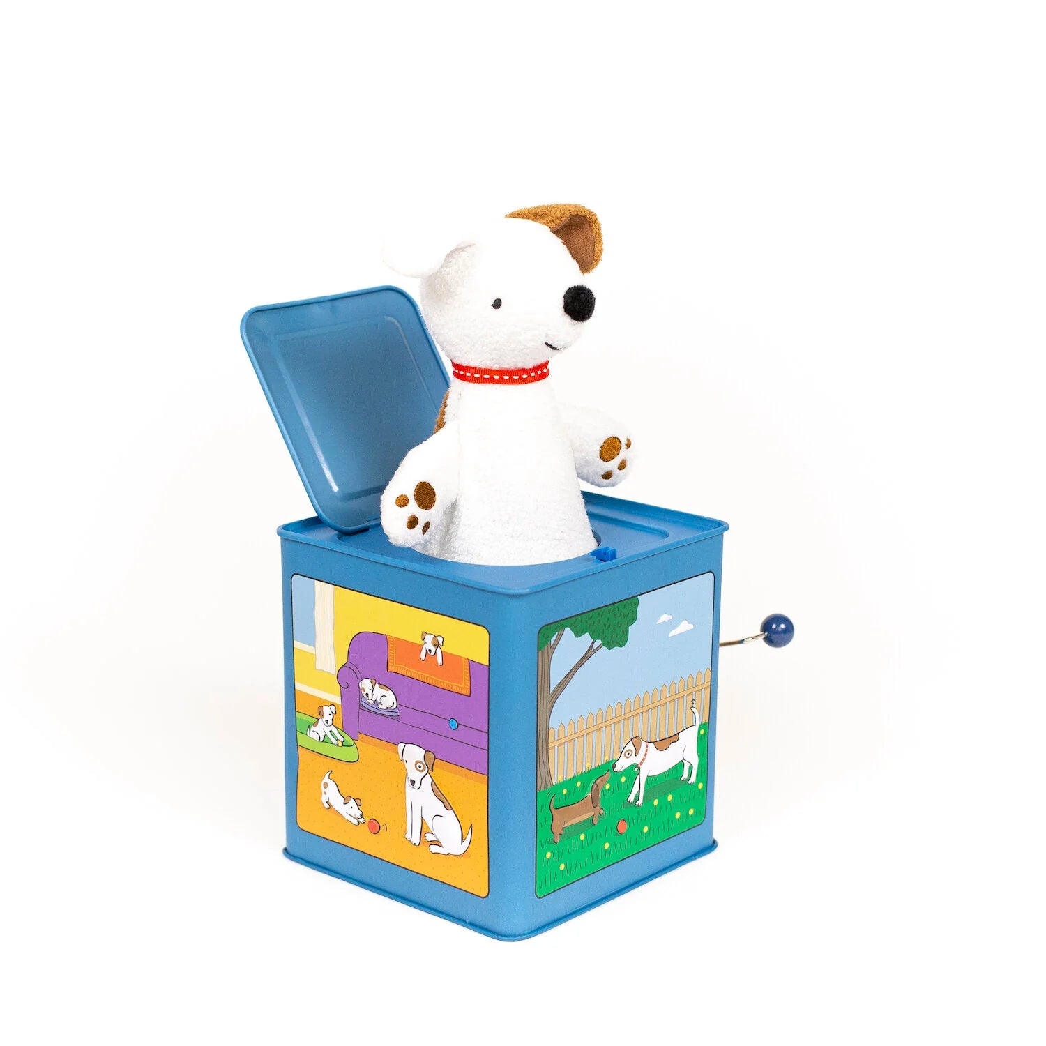 Jack-in-the-Boxes have been a time-honored favorite toy since the 1500’s! Jack Rabbit Creations creates a twist on this classic, with all original art, cuddly plush characters, and unique play-along songs. Surprise your youngsters with this Doggie Jack in the Box that plays “Where oh Where Has My Little Dog Gone”.