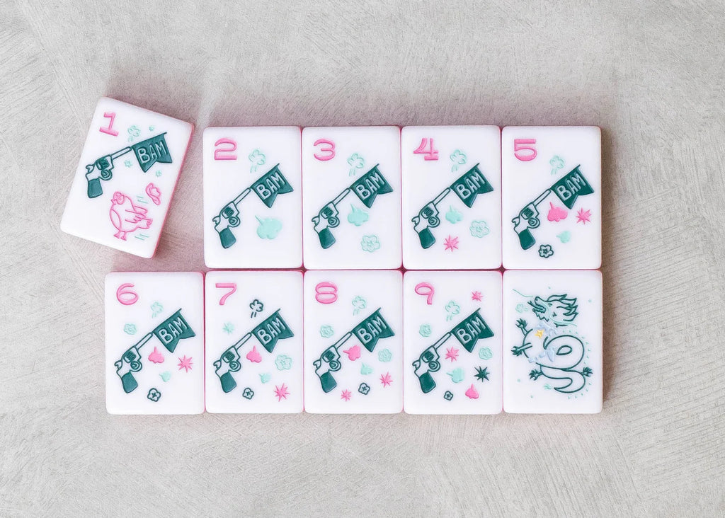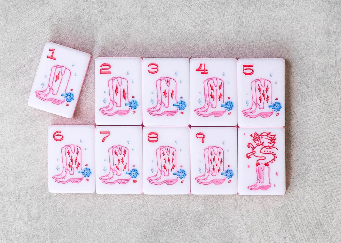 Our 3-layer acrylic set features 160 tiles total; clear lucite and hot pink layers for the back, and a crisp white layer on the front with engraved designs and colorful, painted details for easy visibility.