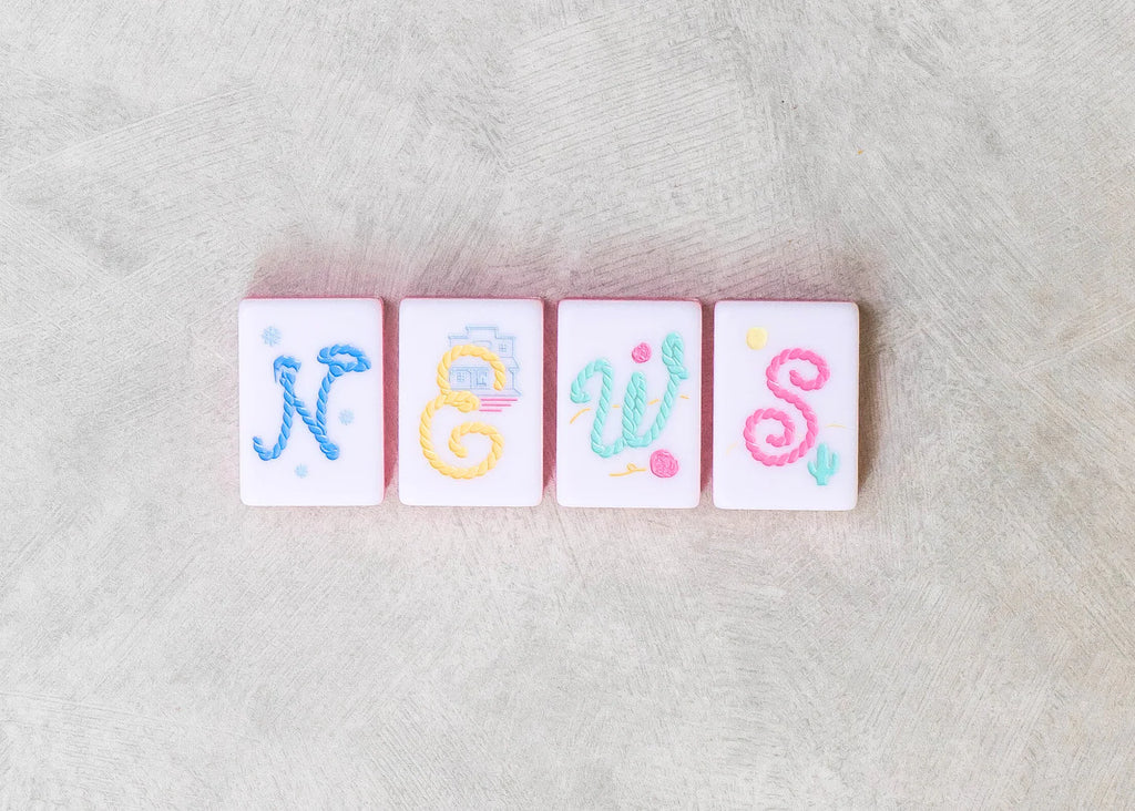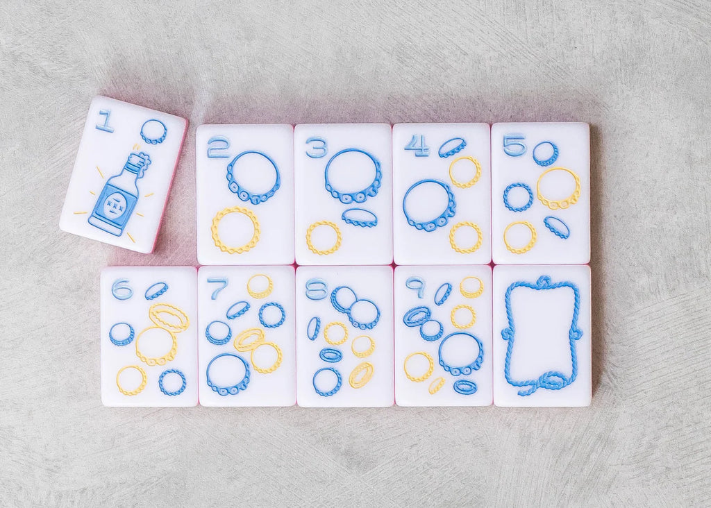 - The process begins with cutting each of the 3 acrylic colors by hand. For a full set of 160 tiles, with 3 colors of acrylic and 4 sides per tile, that’s 1,920 precise cuts per set (!!!) Afterward, the layers are meticulously glued together by hand, one at a time.