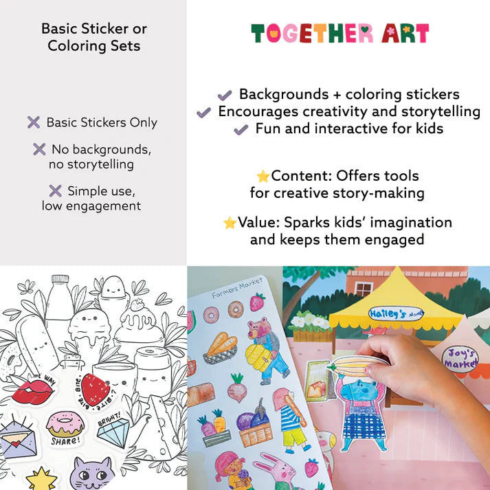 Interactive Storytelling – Encourages kids to become the main character of their own adventure using coloring stickers and themed backgrounds.