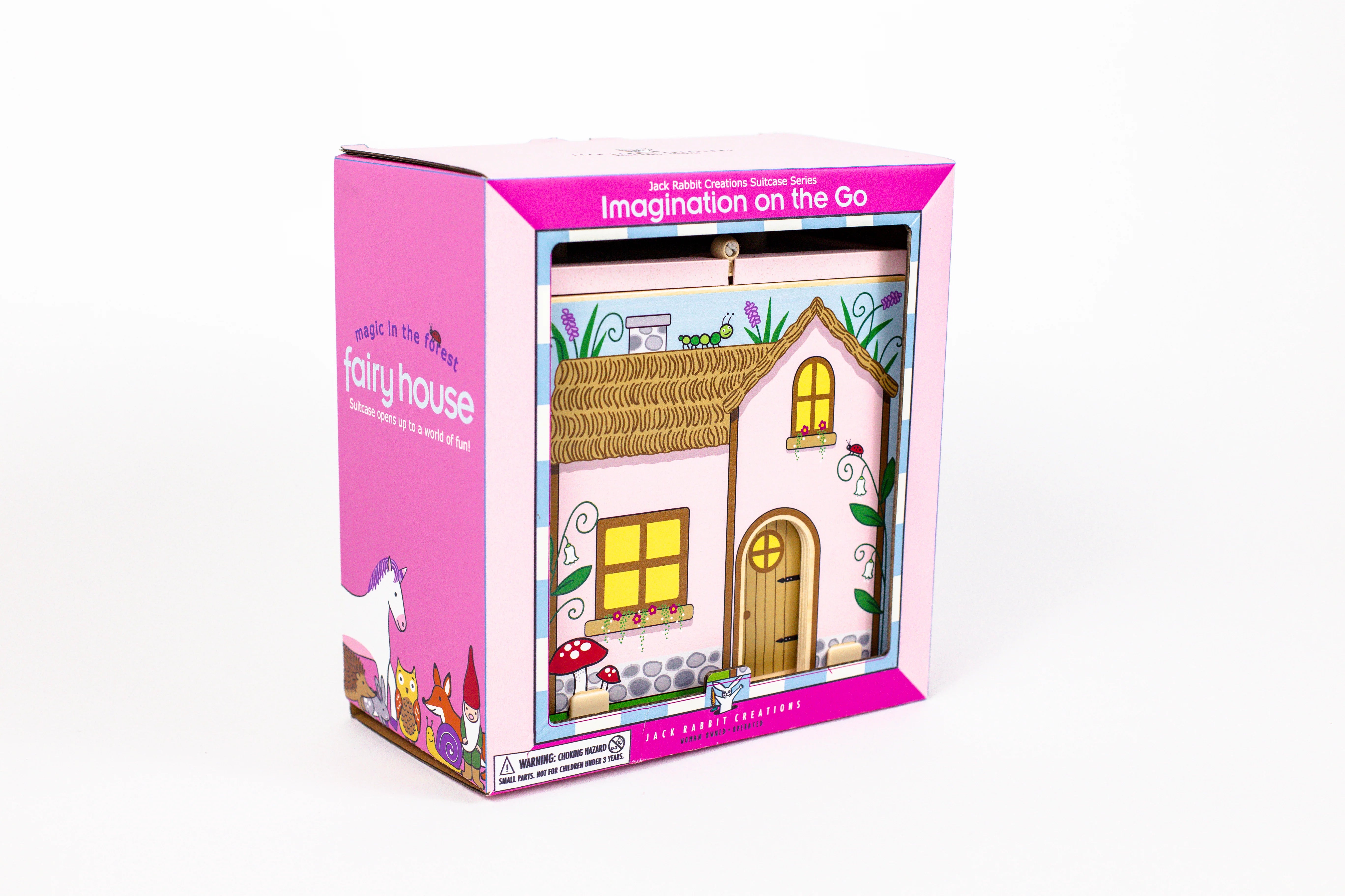 Our new Suitcase Series encourages portable play. Each suitcase opens up on both sides to reveal a world of fun. The 17-piece Fairy House has everything for whimsical fun on the go, including fairies, a unicorn, bridge, gnome, and more!