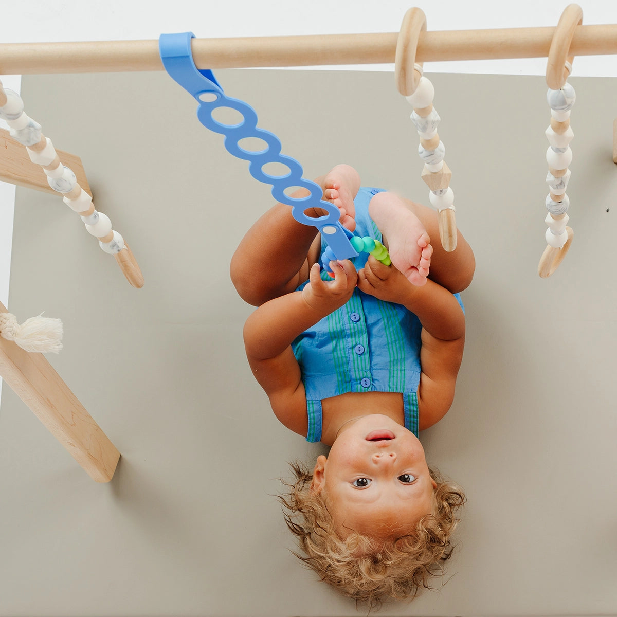 This multi-functional tether is an essential accessory for baby. It easily attaches to a stroller, car seat, carrier, shopping cart, and more, preventing cups, toy and pacifiers from dropping on the floor. when paired with the morepeas® snack cup and suctioned, it keeps baby’s teether or toy safe. Crafted from premium silicone and extensively safety tested, this best-selling tether is a baby registry must-have.