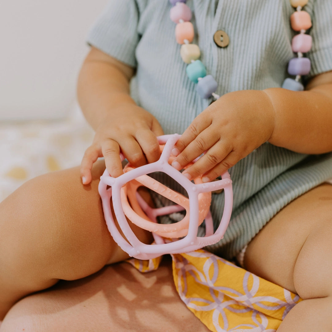 Free from any nasty chemicals, the Sensory Ball is made from food-grade silicone so babies can chew on the soft, safe surface to soothe their aching gums. The open frame design allows them to easily grab the Sensory Ball and bring it to their mouths when any toothy troubles arise.
