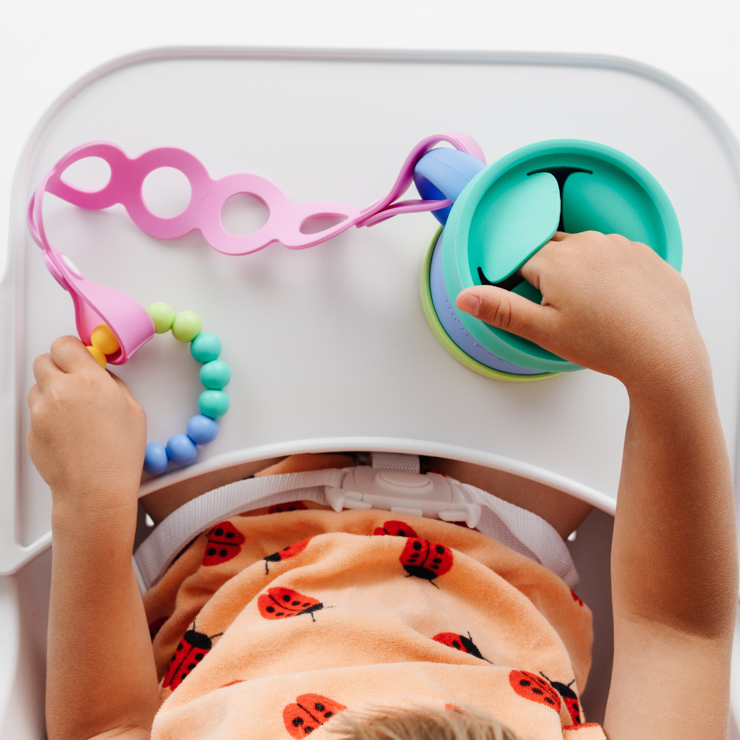 - Easy grip handle so you can tether to toys, stroller, car seat & more
