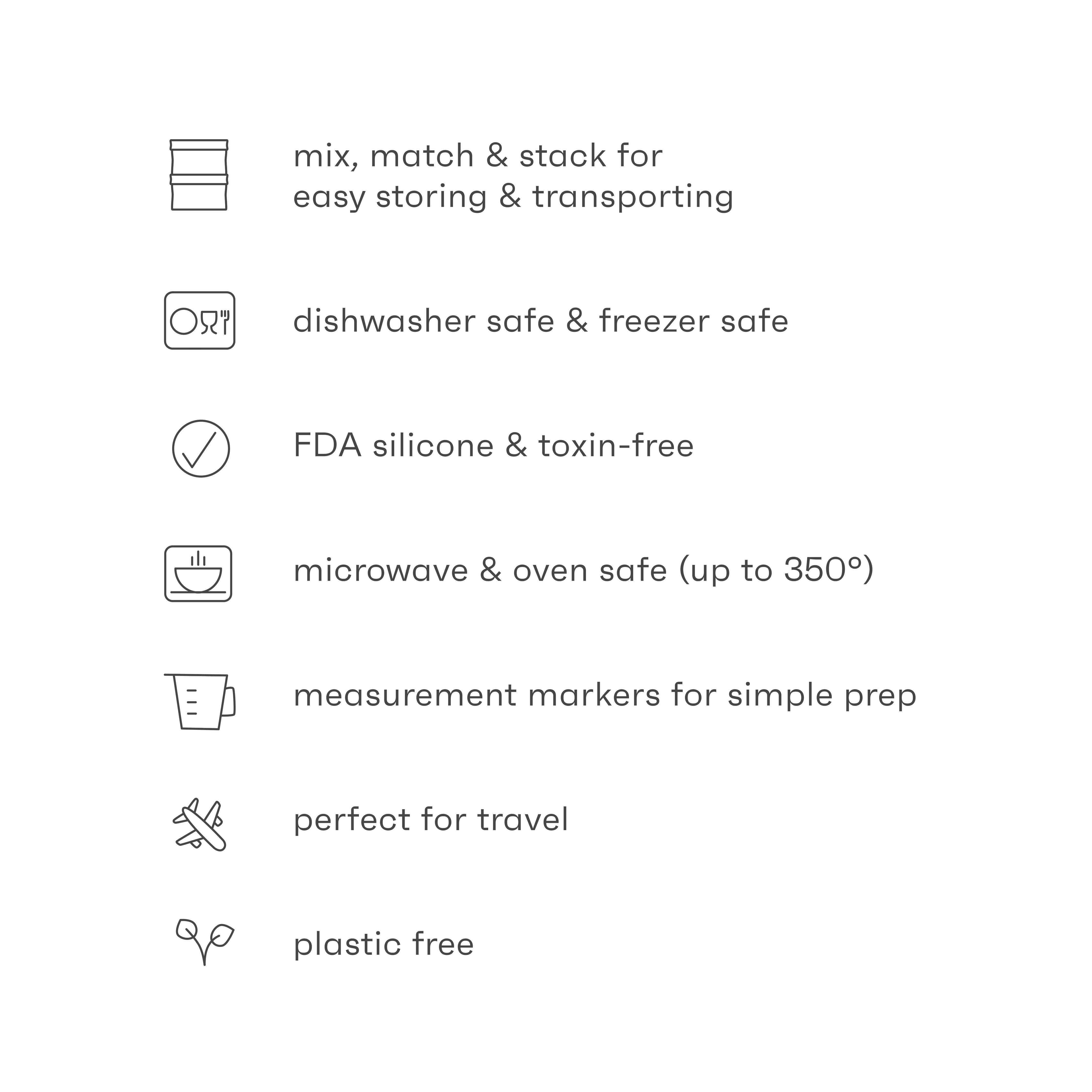 - Built-in measurement markers for simple prep - cook, serve, store, repeat