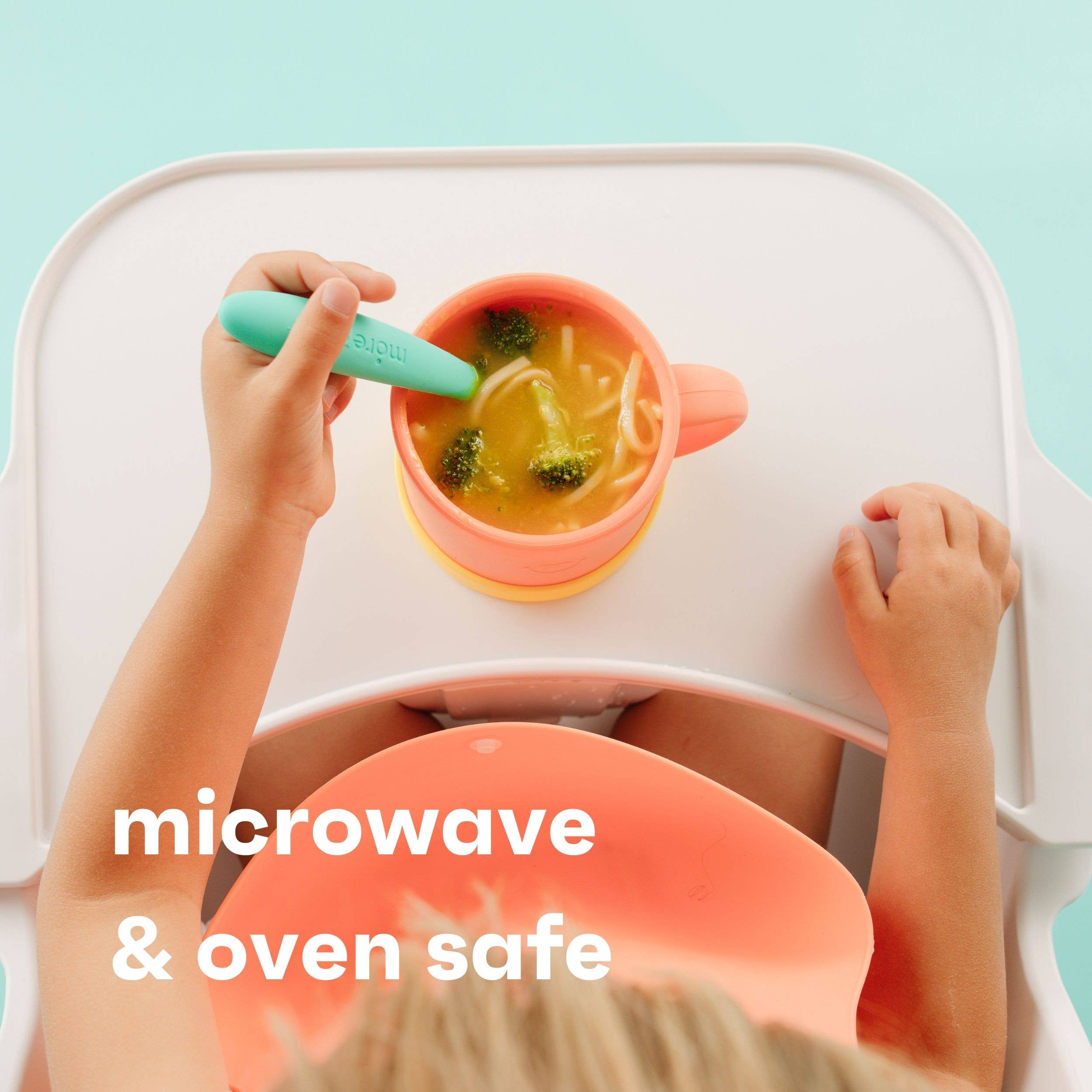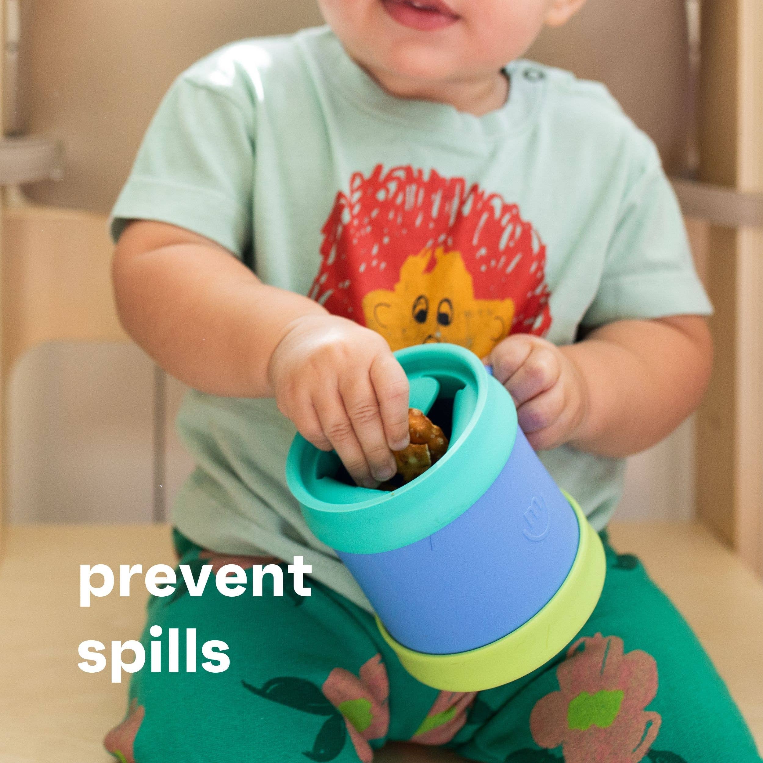 This best-selling Essential Snack Cup is one of the only baby products you can use from 6 months to 6 years! The top lid keeps snacks fresh, reverses as a suction base to avoid spills, and stacks to morepeas® cups and bowls. It can also be used to quickly steam and serve veggies (perfect for baby’s first solids!), serve spill-proof snacks, bake mini cakes and prep 5-minute meals. This toddler mealtime essential is microwave, oven, freezer and dishwasher safe.